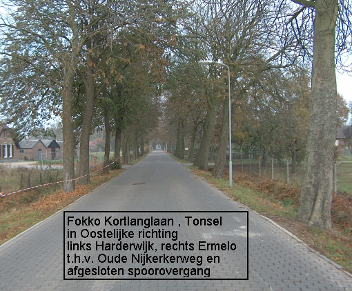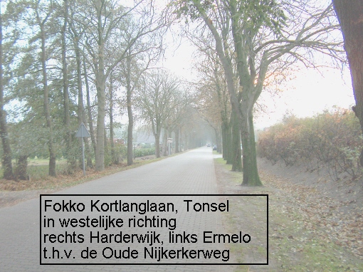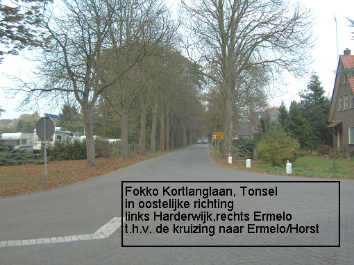 Enkele foto's van de Fokko Kortlanglaan te Tonsel, de weg vanuit Tonsel naar Horst, op de grens van de gemeentes Harderwijk en Ermelo. In de tweede helft van de vorige eeuw werd dit gebied gekenmerkt door veel Peking-eenden fokkerijen en mesterijen . Veel van deze bedrijven zijn inmiddels weer verdwenen. Er resten nog slechts weinige oude boederijen en huisjes van voor die periode. Recent werd de spoorwegovergang op de Fokko Kortlanglaan voor alle verkeer afgesloten waardoor er nu een echte tweedeling is ontstaan in deze zeer oude buurtschap.