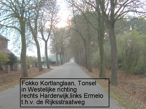 Enkele foto's van de Fokko Kortlanglaan te Tonsel, de weg vanuit Tonsel naar Horst, op de grens van de gemeentes Harderwijk en Ermelo. In de tweede helft van de vorige eeuw werd dit gebied gekenmerkt door veel Peking-eenden fokkerijen en mesterijen . Veel van deze bedrijven zijn inmiddels weer verdwenen. Er resten nog slechts weinige oude boederijen en huisjes van voor die periode. Recent werd de spoorwegovergang op de Fokko Kortlanglaan voor alle verkeer afgesloten waardoor er nu een echte tweedeling is ontstaan in deze zeer oude buurtschap.